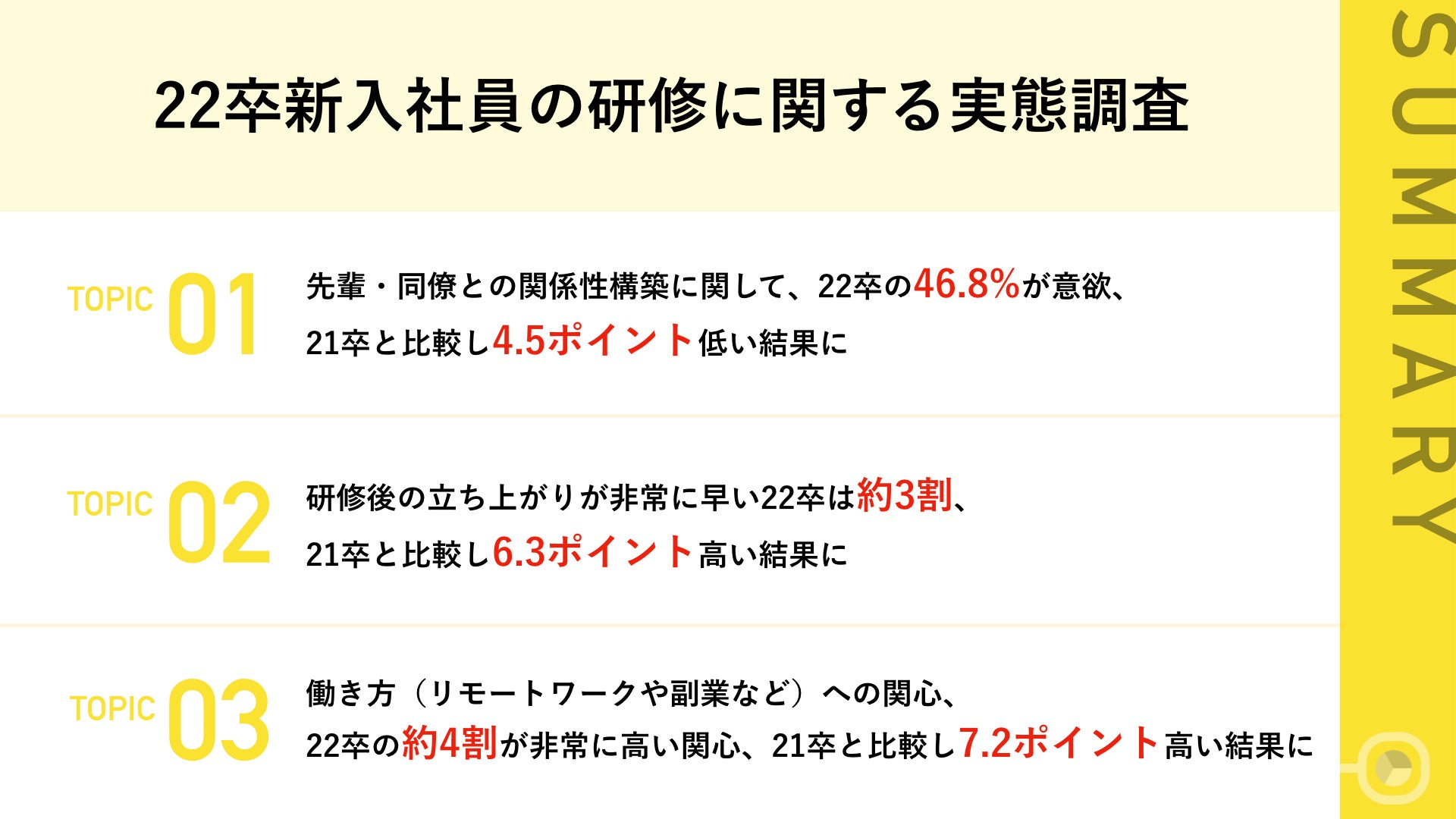 研修後の立ち上がりが「非常に早い」22卒約3割、21卒と比較し6.3ポイント高い結果に